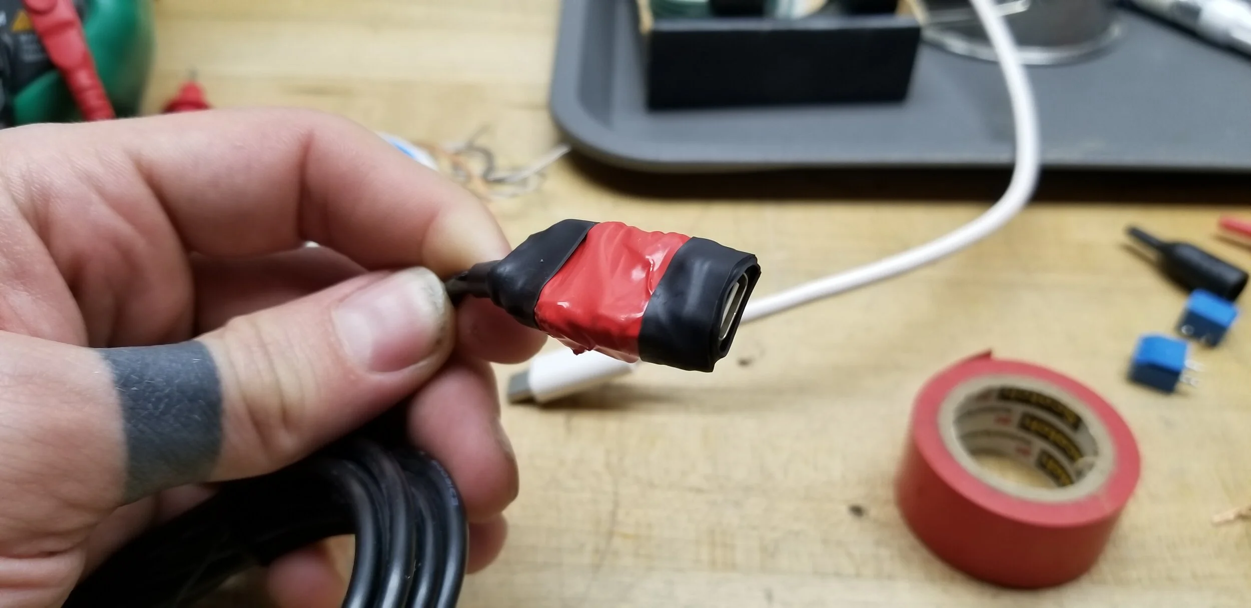 And after that just bodge on some electrical tape and heat shrink to insulate it…